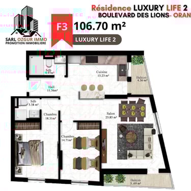 OZGUR IMMO PROMOTION vous propose la résidence LUXURY LIFE 2, une construction moderne et luxurieuse, située dans le nouveau quartier très prisé : le Boulevard des Lions. Un immeuble constitué de 30 logements en 10 étages.